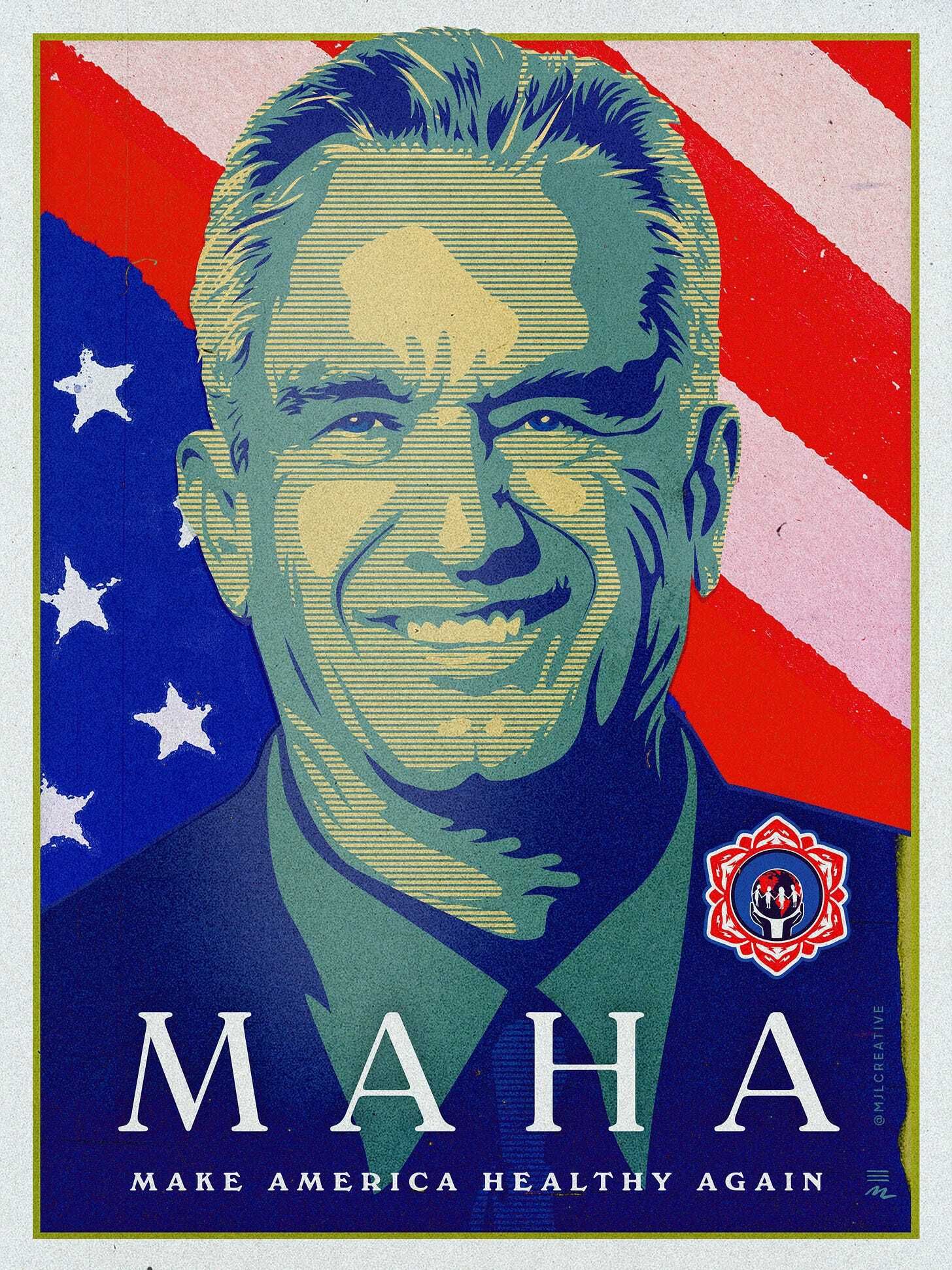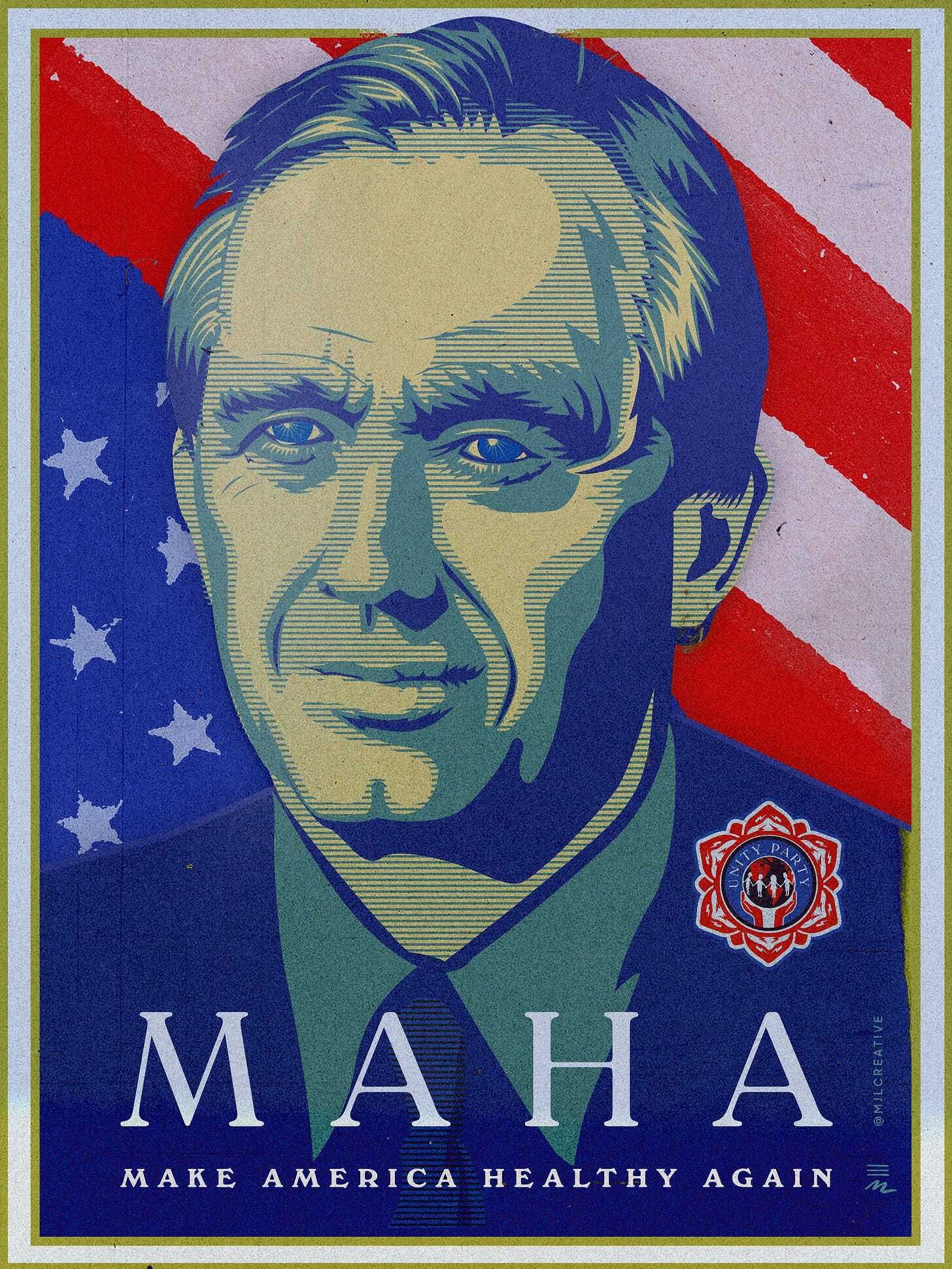 I have offered my services to help Make America Healthy Again in an official capacity, if it is desired. I have given Robert and his team the poster artwork you see below, and he loved it, but wanted me to redo it based on a different picture of him. I did.