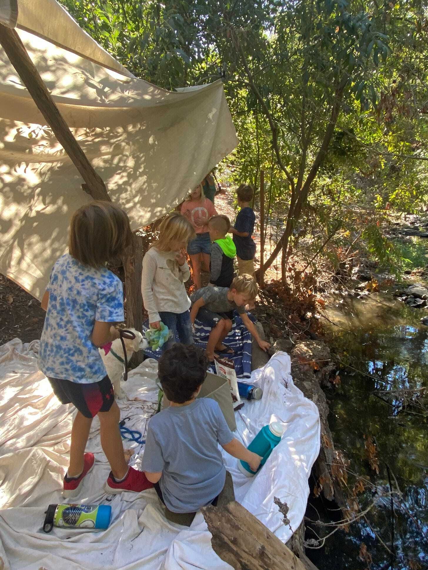 So here we are, into our 3rd season/session and recalibrating. We’ve seen some amazing staff come and go, and we have scaled back the operation to just 2 classes we’re immensely proud of back at our home-base park. It’s a fantastic location with botanical gardens, trails, green grassy fields, a creek and ample parking that allows parents to safely drop off and linger around the park, (away from the class, but still close) should their child have some separation anxiety. This was something we could not offer at the private location due to respect to the landowners and neighbor’s privacy. Something didn’t feel right about parents having to bum-rush their child out of the car at drop off. Isn’t that what public schools have to do?